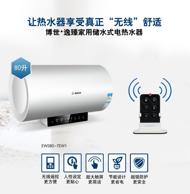 電子式控制,觸摸按鍵。無線遙控器。可選容積為50L/60L/80L/100L。