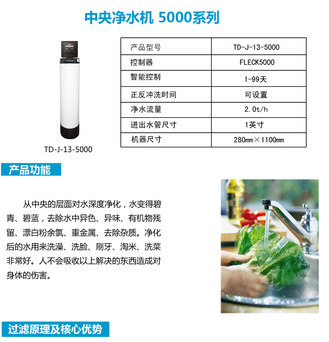 全屋中央凈水機(jī)有效去除水中的異色、異味;進(jìn)一步濾除水中微小雜質(zhì)、膠狀體;去除水中的漂白粉余氯、農(nóng)藥、重金屬;保留對人體有益的礦物質(zhì)。使水變得碧清、碧藍(lán),去除對人體有害的物質(zhì)。
