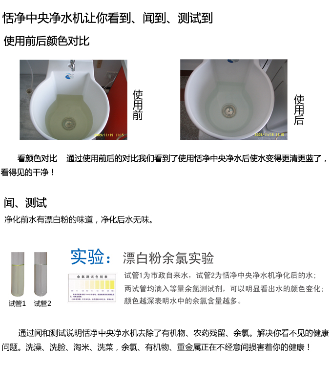 手動(dòng)中央凈水機(jī)有效去除水中的異色、異味;進(jìn)一步濾除水中微小雜質(zhì)、膠狀體;去除水中的漂白粉余氯、農(nóng)藥、重金屬;保留對(duì)人體有益的礦物質(zhì)。使水變得碧清、碧藍(lán),去除對(duì)人體有害的物質(zhì)。